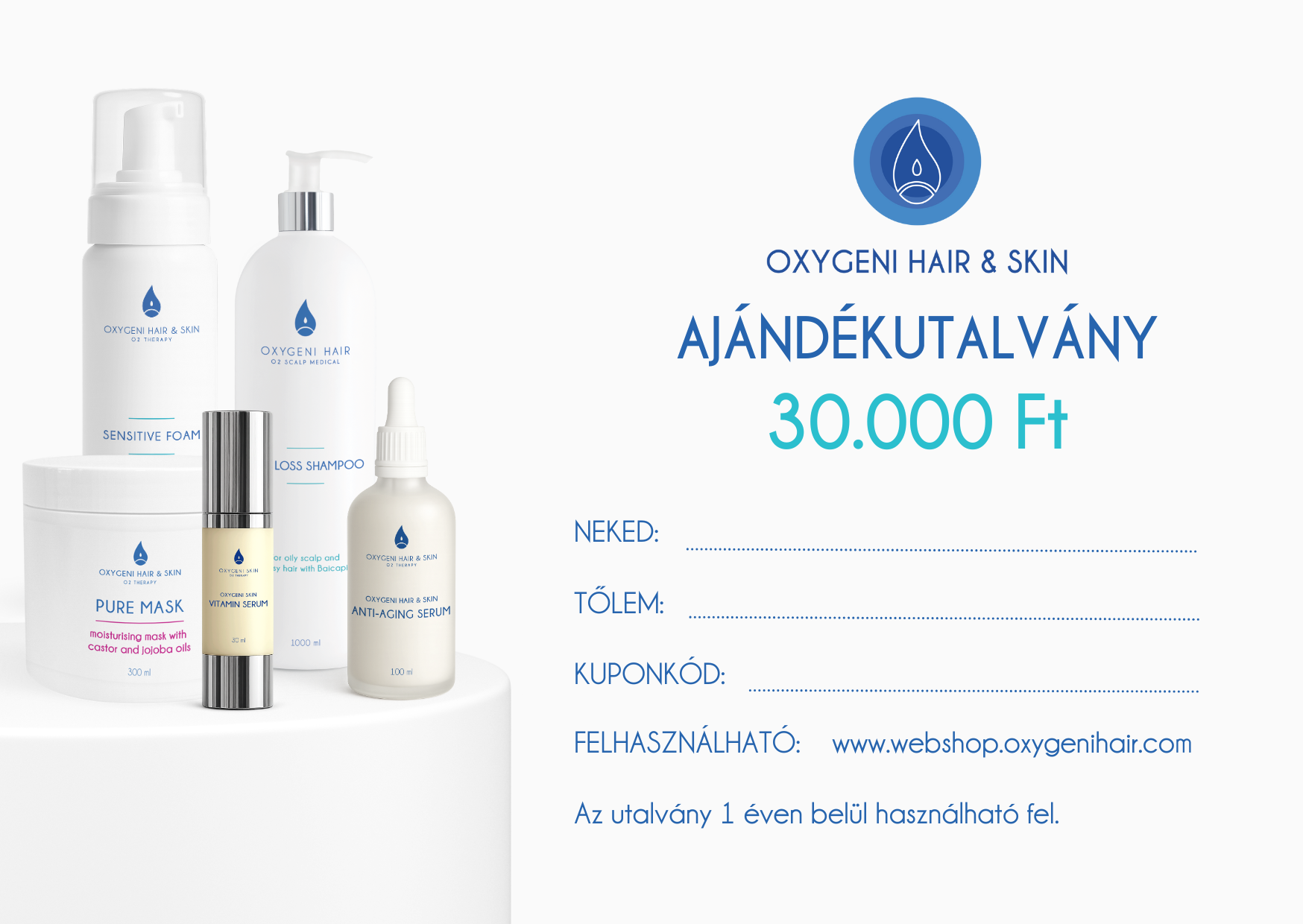 - Webáruház utalvány: Kizárólag az Oxygeni Hair & Skin webshop-ban vásárolható le. Az utalvány csak egy megrendelésre érvényesíthető!