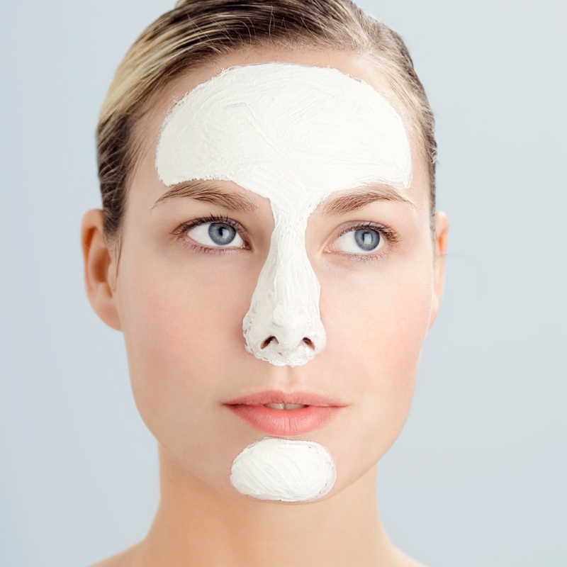 Fejbőr, homlok, orr, áll területe (T-zóna)