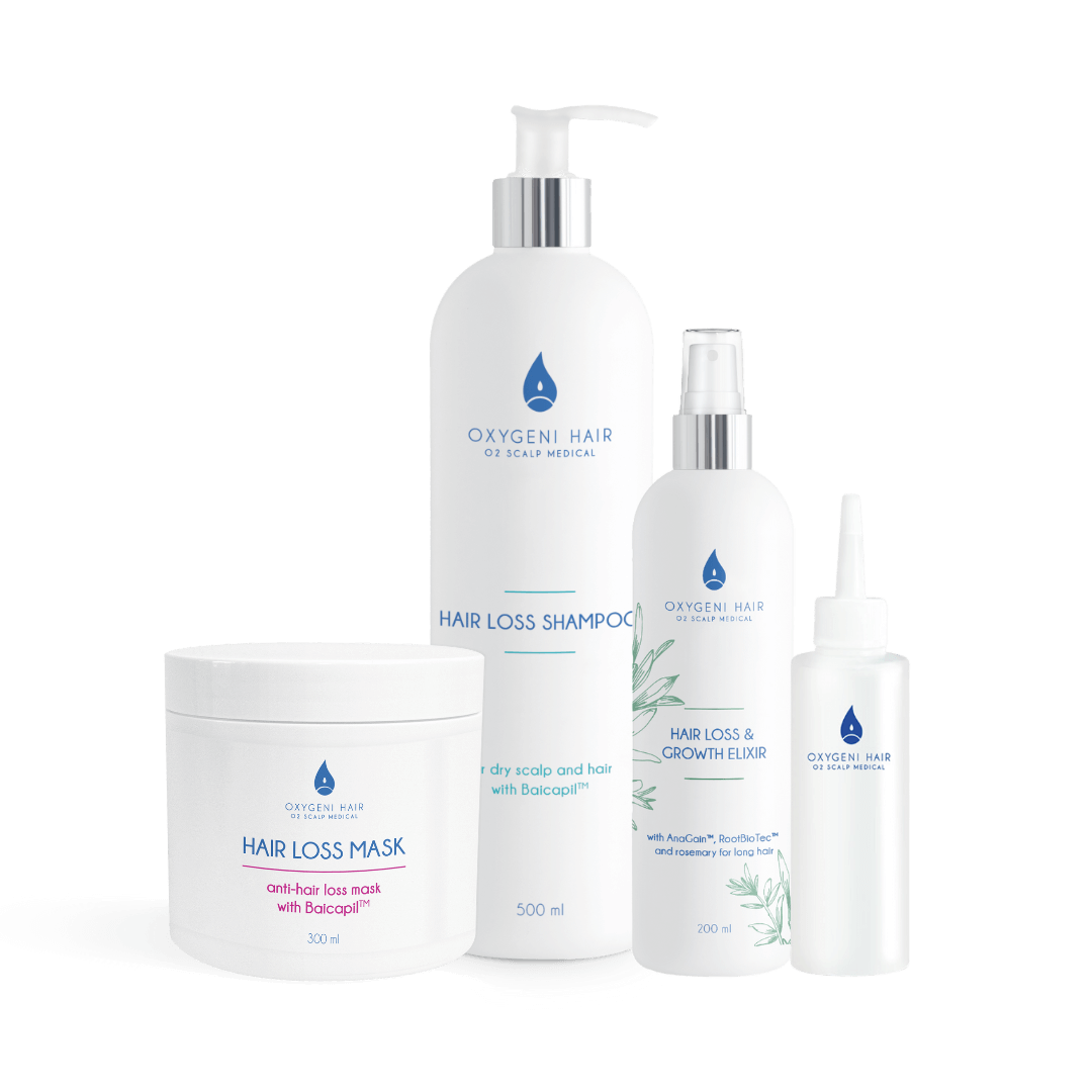 A Hair Loss Shampoo gyenge, ritkuló hajra ajánlott sampon. A B5 vitamint tartalmazó nyomelemek behatolnak a fejbőr rétegébe, pozitív hatást gyakorolnak a szőrtüszőkre, megerősítve őket. A Baicapil™-t, maca gyökér kivonatot és B5-vitamint tartalmazó Hair Loss Mask segít megállítani a hajhullást és megerősíteni a gyenge hajszálakat. A rozmaringvizet és AnaGain™-t tartalmazó Hair Loss & Growth Elixir termékünk egy hajnövesztő vizes oldatú készítményünk, amit kifejezetten a hajhullás ellen és a hajnövekedés elősegítésére fejlesztettünk ki.