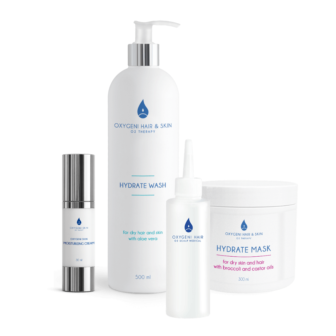 Az ekcéma alapcsomag a Hydrate Wash (500 ml), Hydrate Mask (300 ml) és Moisturizing Cream (30 ml) kombinációja segít megőrizni a bőr nedvességtartalmát, megnyugtatja és hidratálja a gyulladt, viszkető és kipirosodott bőrt. Kifejezetten ajánlott ekcémás bőrre, száraz hajszerkezetre és érzékeny, gyulladt fejbőrre.