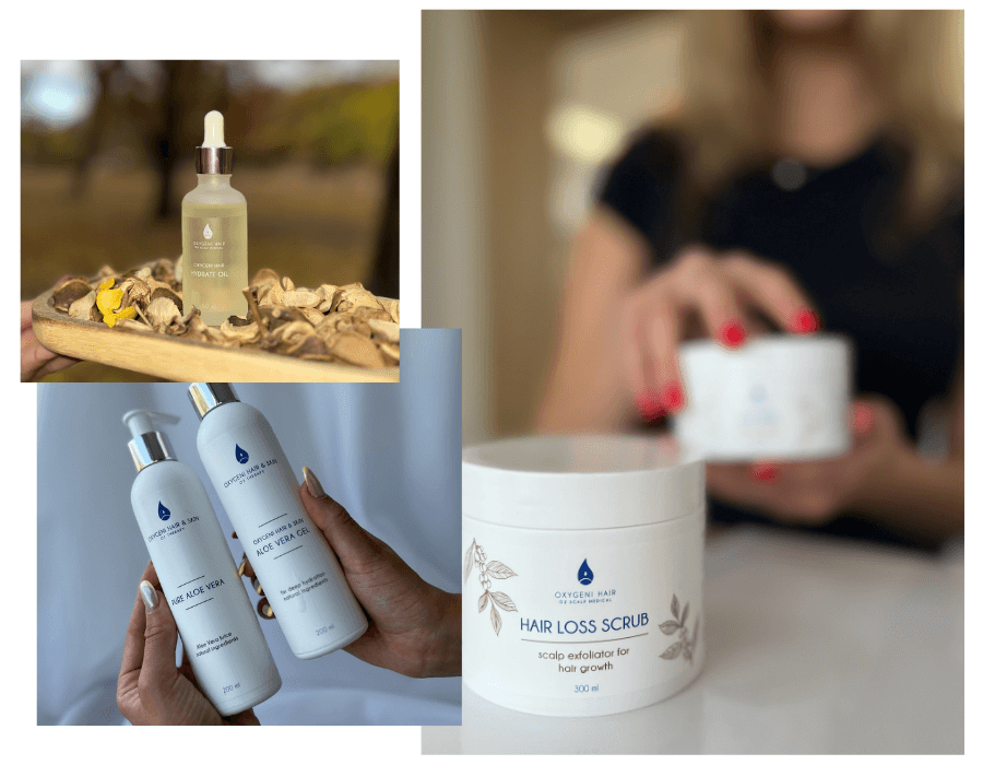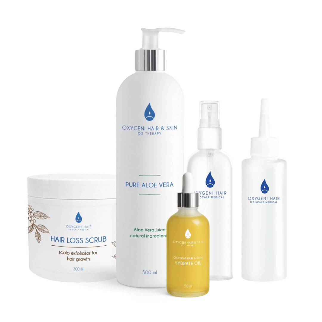 Kiegészítő csomagunk a Pure Aloe Vera (500 ml), Hair Loss Scrub (300 ml) és Hydrate Oil (50 ml) termékeket tartalmazza. A három termék egymást erősítve csökkenti a száraz korpásodást, nyugtatja a fejbőrt és támogatja a hajhagymák működését.