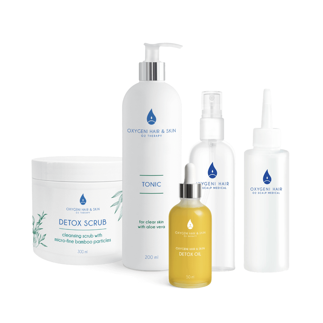Kiegészítő csomagunk a Detox Oil (50 ml), Hair Loss Scrub (300 ml) és Tonic (200 ml) termékeket tartalmazza. A három termék egymást erősítve csökkenti a korpásodást, nyugtatja a gyulladt fejbőrt és támogatja a hajhagymák működését.