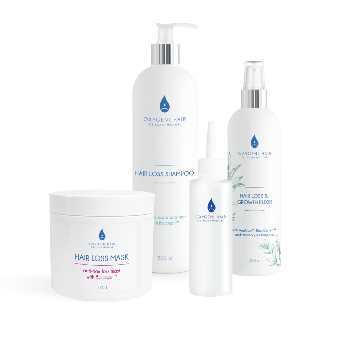 A Hair Loss Shampoo klinikailag igazolt Baicapil™ hatóanyagot, maca gyökér kivonatot, panthenolt és kókusz glükozidot tartalmaz, amelyek együtt serkentik a hajnövekedést és növelik a hajsűrűséget. Kíméletesen tisztít anélkül, hogy kiszárítaná a fejbőrt, kifejezetten száraz hajra és fejbőrre ajánlott. A Hair Loss Mask szintén Baicapil™-t, maca gyökér kivonatot és panthenolt tartalmaz, kiegészítve argán-, jojoba-, rozmaringolajjal. Mélyen hidratál, erősíti a hajhagymákat, támogatja a hajregenerációt és puhává, fényessé teszi a hajat.