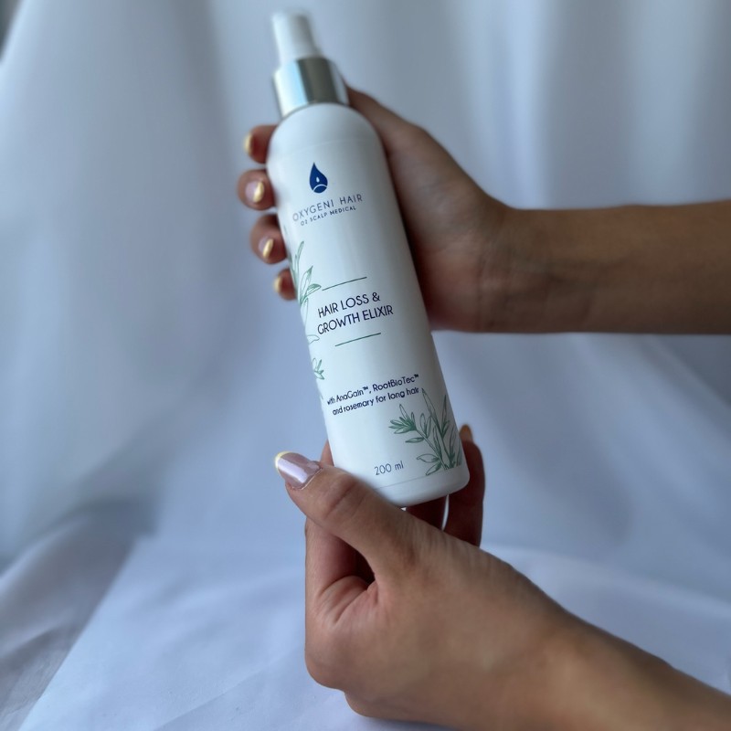 A Hair Loss & Growth Elixir az első olyan hajnövesztő vizes oldatú készítményünk, amely kifejezetten a hajhullás ellen és a hajnövekedés elősegítésére készült. A termék sűrűsíti és erősíti a hajat, vastagabbá teszi a hajszálakat, és már három hónapos használat után látványos eredményeket nyújt. Emellett megakadályozza a haj szöszösödését, és a hő hatására aktiválódó védőanyagai miatt tökéletes választás hajformázás előtt. Fő hatóanyagai a rozmaring kivonat, az AnaGain™ és a RootBiotec™ HW. Az AnaGain™, egy zöldborsóból kivont, klinikailag igazolt összetevő, amely csökkenti a hajhullást, javítja a haj szerkezetét és meghosszabbítja a hajszálak élettartamát. A RootBiotec™ HW egy biotechnológiai alapú rozmaring gyökér-kivonat, amely serkenti a hajhagymák aktivitását és támogatja az egészséges hajnövekedést.