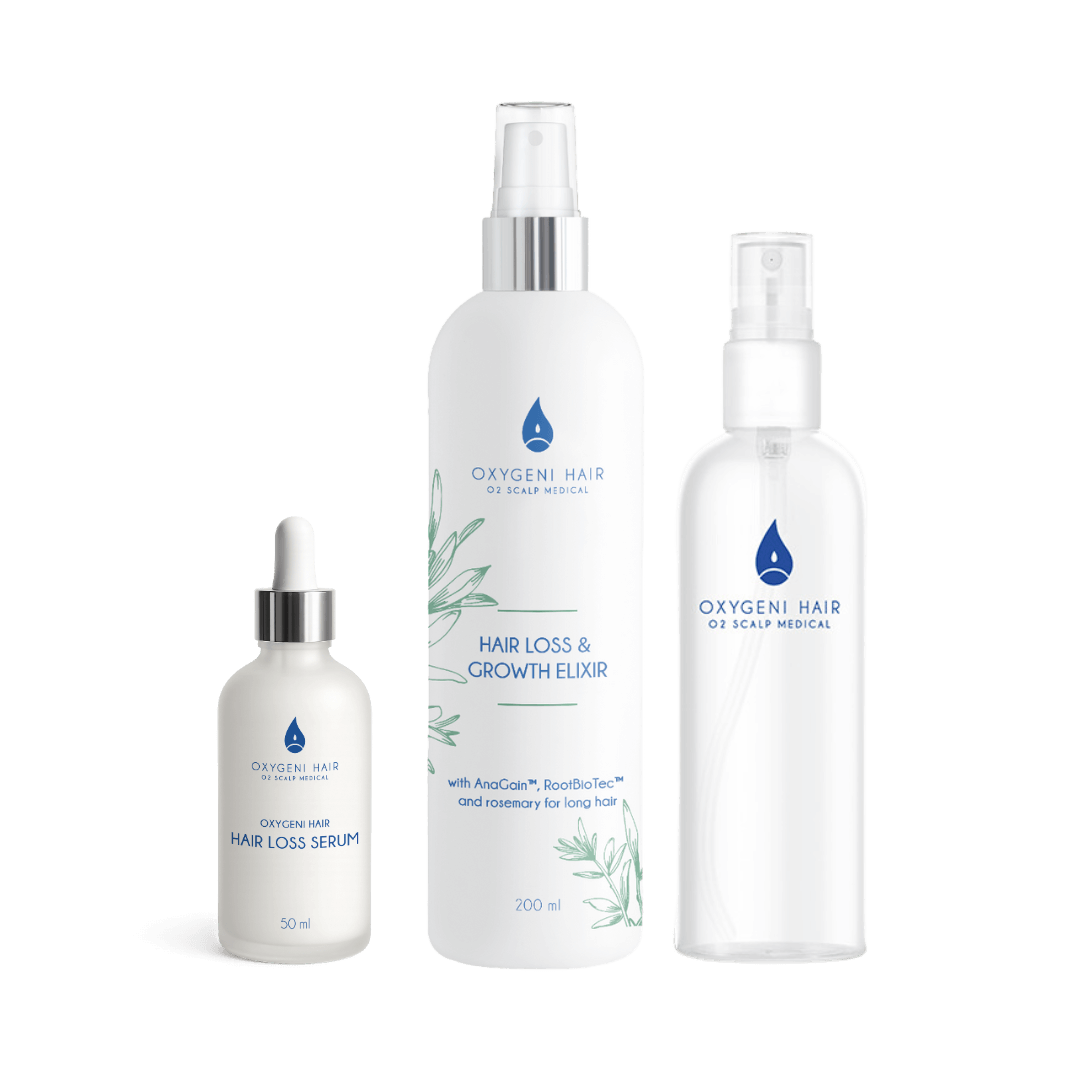 Kiegészítő csomagunk a Hair Loss Serum (50 ml) és a Hair Loss & Growth Elixir (200 ml) termékeket tartalmazza. Mindkét termék 100%-ban kemikáliamentes, klinikailag igazolt hatóanyagokat tartalmaz, amelyek csökkentik a hajhullást, serkentik a hajnövekedést és erősítik a hajszálakat. Az AnaGain™ és a RootBiotec™ HW hatóanyagoknak köszönhetően már három hónapos használat után látványos eredmények érhetők el.