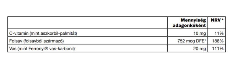 - A C-vitamin és a folsav fokozza a vas felszívódását, így maximalizálja a hatékonyságot minden adagban