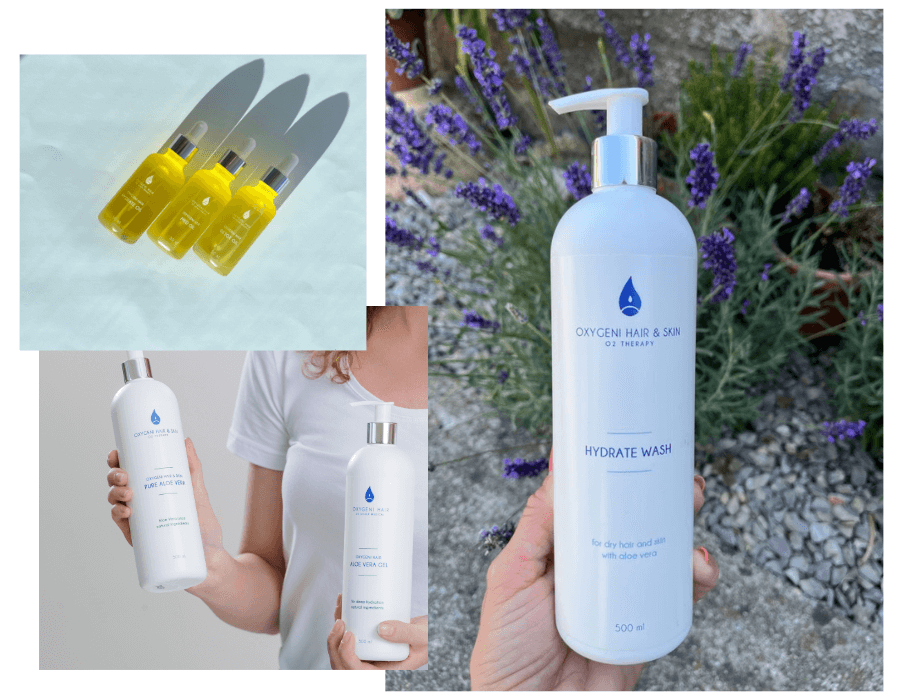 Az olajoknak sokkal hatékonyabb a felszívódása ha vivőanyaggal visszük fel a bőrre vagy a hajra. Tökéletes vivőanyagok hozzá az Aloe Vera termékek, illetve H2O Thermal termékünk, melyekkel keverhetünk hidratáló és gyulladáscsökkentő permeteket. A keverékkel befújhatjuk fejbőrünket, arcunkat egyéb bőrfelületeket is. Olajokkal dúsíthatjuk a fejbőr és arcpakolásokat vagy önmagukban felvíve kezelhetjük a száraz hajvégeket.