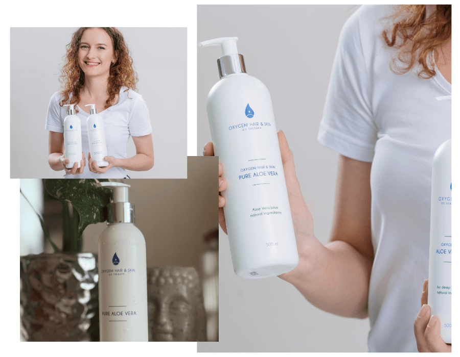 A Pure Aloe Vera kiválóan alkalmazható fejbőrproblémák esetén. Nyugtatja és hidratálja az érzékeny fejbőrt, csökkenti az irritációt. A szérumok és az olajok a Pure Aloe Verával kikeverve a bőr mélyebb rétegeibe jutnak el, könnyebben és gyorsabban szívódnak be, így nem hagynak maguk után zsíros, olajos érzetet.