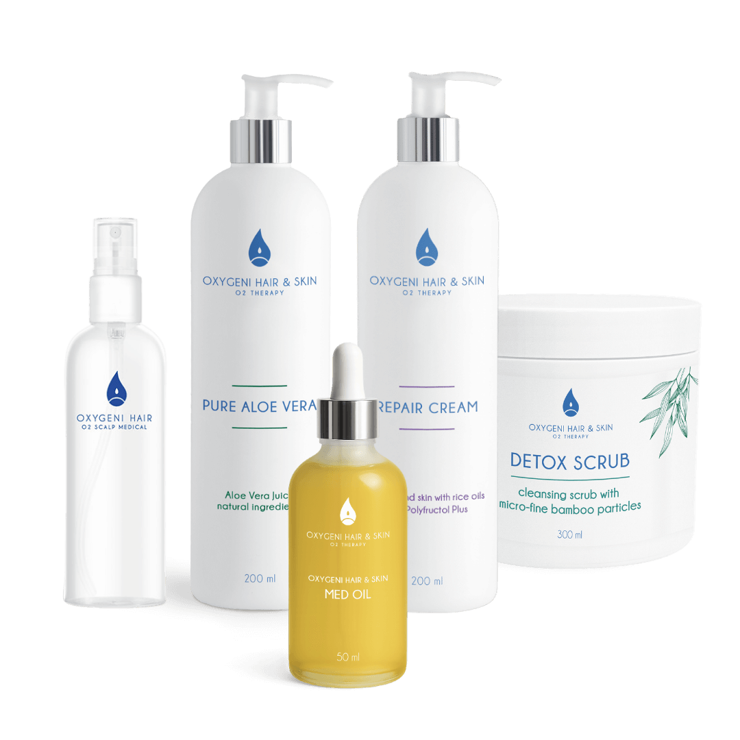 A csomag négy egymást kiegészítő lépésből áll: a Detox Scrub (300 ml) kíméletesen eltávolítja az elhalt hámsejteket és szennyeződéseket, a Pure Aloe Vera (200 ml) nyugtató, hidratáló vivőanyagként tölti fel nedvességgel a bőrt, a Med Oil (50 ml) illat- és irritációmentes olajként erősíti a bőr védőrétegét, míg a Repair Cream (200 ml) PolyFructol Plus hatóanyagának köszönhetően mélyen hidratál, regenerál és hosszan tartó nedvességet biztosít.